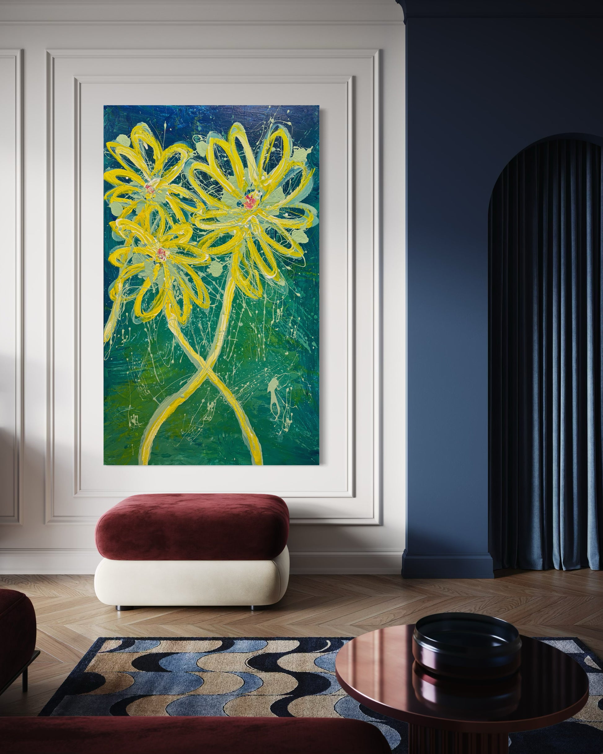 - Small & Medium Paintings (up to 30 inches x 48 inches): Shipped in a box and ready-to-hang.