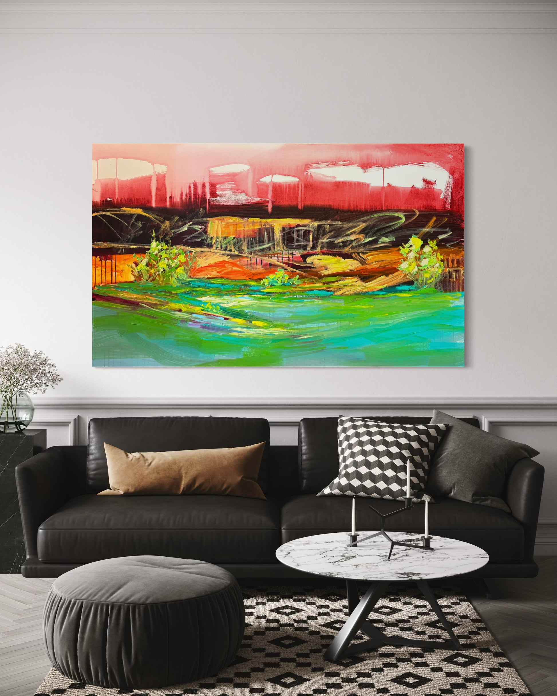 - Small & Medium Paintings (up to 30 inches x 48 inches): Shipped in a box and ready-to-hang.